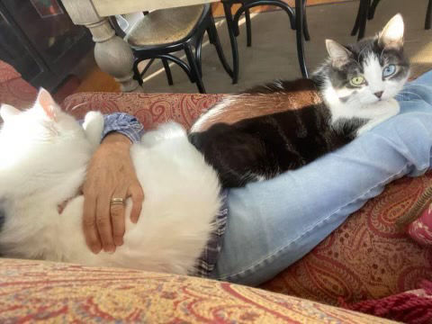 I recall the opportunity I had to go to Spain in 2019 like it was yesterday. I was terrified to leave Prissy, Otis and Nonnie alone with someone I did not know much less have them in my home. Boy did I find an angel in Robyn. She understood my fears and concerns and never made me feel as if I was overreacting. She came over twice before I left for my nine-day trip to Spain to let the babies get use to her. She even left her shirt for them to smell because animals learn who you are by scent. My big boy Otis has always been a shy guy. Otis hid for most of my trip but she would send me daily texts on how each visit went so I knew he was eating even if he wasn’t ready to show his face. It was so reassuring to have texts along with pictures of them looking content and relaxed. On my last day in Spain, shy Otis finally came out and let her pet him. She has been part of our family ever since! I lost poor Prissy in 2020 and she came by to say goodbye. She is like family and I do not know what I would do without her. Otis, Nonnie, and new baby Marco love their God mother Robyn.